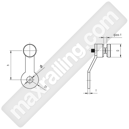 Единичен спайдър Ø30мм. за стъкло от 6мм. до 12,76мм. Неръждаема стомана AISI 304. Сатенирана.
