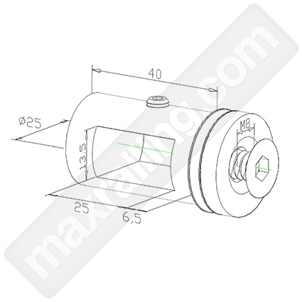 Сигурна връзка на стъкло с отвор към профил 25х13мм.
