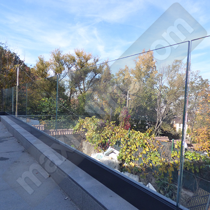 Стъклен парапет с алуминиев профил за монтаж върху борд.
