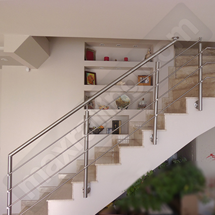 Изпълнени парапети инокс във вариант:ТЕРАСИ:Кръгли дървени колонки с държачи за стъкло, кръгладървена  ръкохватка, стъкло триплекс 4/4/1. Колонките са монтирани странично .   Местоположение: Австрия: Виена прочети още
