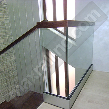 Стъклен парапет: Основа плътен елоксиран алуминиев прифил със система за монтаж на стъклото. Всяко стъкло се състои от две безцветни закалени стъкла на френската фирма „Saint-Gobain“, с дебелина по 8мм. ламинирани с две фолиа модел „EVA Premium” (състав етил винил ацетат) с висока устойчивост на влага, атмосферни условия и стареене. Байцвана дървена ръкохватка от бук 50х60мм. с канал за монтаж върху стъклото. Височина на парапета 105см. измерено от готов под.