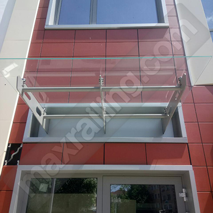 Навес изграден от иноксова изрязана ламарина, върху нея са монтирани иноксови кръгъли стъклодържачи, на които са поставени прозрачни стъкла под ъгъл.