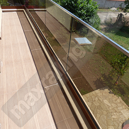 Стъклен парапет: Основа плътен алуминиев прифил със система за монтаж на стъклото. Профила се монтира към стоманобетонната конструкция чрез химически анкер „Hilti” и крепежни елементи от неръждаема стомана. Всяко стъкло се състои от едно безцветно и едно бронзе закалени стъкла на френската фирма „Saint-Gobain“, с дебелина по 8мм. ламинирани с две фолиа модел „EVA Premium” (състав етил винил ацетат) с висока устойчивост на влага, атмосферни условия и стареене. Ръкохватка от П-профил 20х20х1,5мм. от неръждаема стомана AISI 304. Профила основа е боядисан в цвят по RAL. Височина на парапета 105см. измерено от готов под.