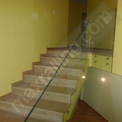 Стъклен парапет: Всяко стъкло се състои от две безцветни закалени стъкла на френската фирма „Saint-Gobain“, с дебелина по 8мм. ламинирани с две фолиа модел „EVA Premium” (състав етил винил ацетат) с висока устойчивост на влага, атмосферни условия и стареене. Стъклото се захваща към конструкцията с иноксови дистанционери Ø50мм. Без ръкохватка. Височина на парапета по стълбите 90см. измерено от преден край на стъпалото.